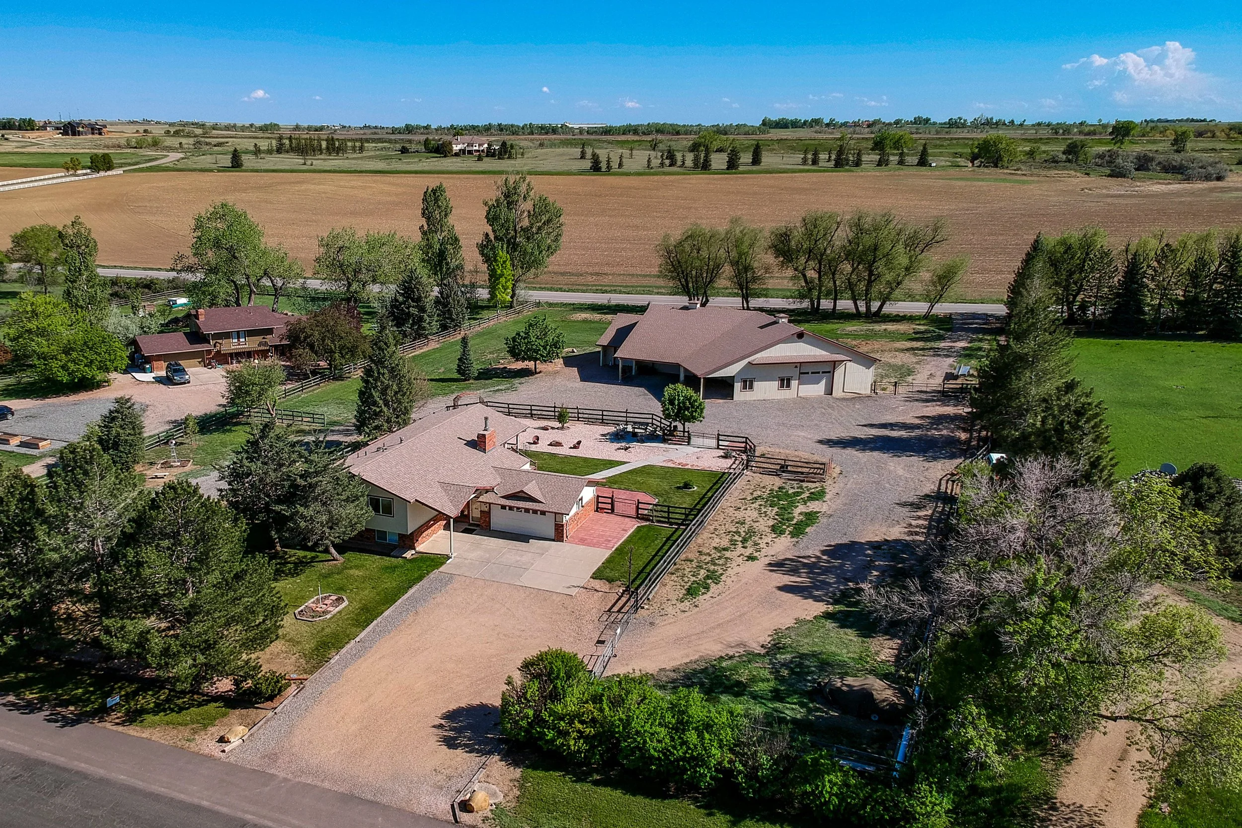 Welcome to a truly exceptional property that offers an unbeatable blend of charm, space, and potential - all set against the picturesque backdrop of Colorado living. Priced attractively below market value, this hidden gem is a rare find and a perfect opportunity for anyone seeking their own slice of heaven in northern Colorado. Situated on a generous 2.4-acre lot, the property boasts expansive, lush green grass, mature landscaping, and multiple inviting seating areas - perfect for soaking in the scenic Colorado views from a bench or a rocking chair. Whether you're entertaining guests or enjoying a peaceful evening, the outdoor setting creates a tranquil, halcyon ambiance. The home itself is a well-cared-for bi-level residence featuring 3 spacious bedrooms and 2 full bathrooms upstairs. The lower level showcases a large recreation room anchored by a classic wood-burning fireplace, perfect for creating warm, welcoming gatherings in cooler months. Also on the lower level is a spacious study or bonus room that could easily function as a fourth bedroom, with a half bathroom and utility room conveniently located nearby. Step outside to enjoy the expansive deck and patio. These outdoor areas are perfect for barbecues, summer parties, or simply enjoying a quiet cup of coffee as the sun rises. This home is also getting a brand-new roof! In addition, there is a 4000 sq. ft. pole barn/shop with 3 garage bays on this property, ideal for storing RV's, ATVs, boats, or all your Colorado adventure gear. The shop has electricity throughout and has a ton of extra storage up in the mezzanine, too. This serene and secluded home is a mere 5-minute drive to downtown Berthoud, and only a 10-minute drive to Longmont and to Loveland, making it the best of both worlds. Come see it before it's gone!